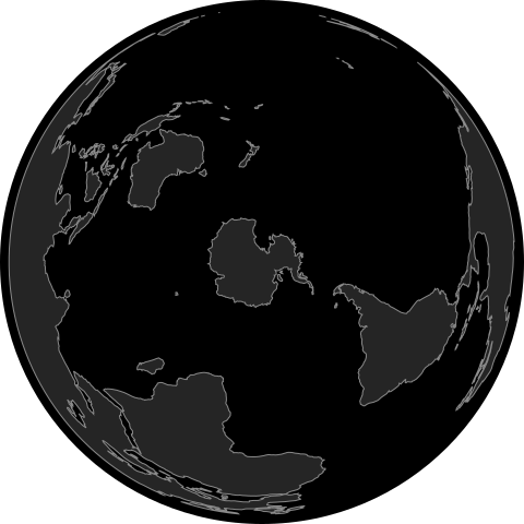 About 68% of Earth's land area is in the northern hemisphere. A south-pole-centered azimuthal projection pushes most continents to the outer edge, where the projection stretches them into thin, hard-to-recognise shapes. Here is what it would look like: